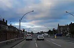 At Weelsby Road, there existed previously, a subway beneath the Grimsby to Louth Railway and to provide access to the new road, the subway was filled in and a new traffic signal junction created.[5] A few residential properties were purchased by agreement and this allowed the construction of slip lanes from Weelsby Road to the new Peaks Parkway and Peaks Parkway itself to be widened to allow 2 lanes in each direction immediately at the junction.