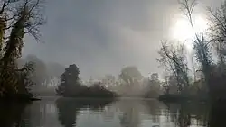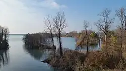 Peche Island (French pronunciation anglicized to /ˈp/, therefore occasionally misspelled "Peach"), is an uninhabited, currently 86-acre (35 ha) (reduced by erosion from a 1965 measurement of 109 acres / 43.7 ha) Canadian island in the Detroit River, at its opening into Lake Saint Clair. It is 1.2 miles (1.9 km) east of U.S. island Belle Isle, and 360 yards (330 m) from the Windsor shore.