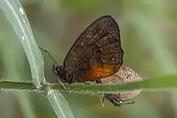 | Montagna mountain satyr P. montagna, mating, Colombia | |