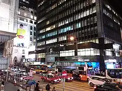 The first Jardine House, headquarters of Jardine, Matheson & Co., was probably built around 1841 after Jardine's successful bid for its lots on The Praya Central. In 1908, the second Jardine House was built.[10] It was rebuilt in around 1956, and reborn in the early 1970s as Wheelock House, current headquarters of Wheelock and Company Limited, controlling shareholder of The Wharf (Holdings) Limited, a major conglomerate in Hong Kong.[6]