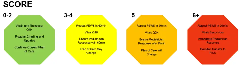 - There are severe consequences if quick intervention is not established, including possible permanent damage or death. A child with a PEWS score of 6+ will mostly be transferred to a PICU to receive the level of critical care they need to improve outcomes with a staff trained to do so.[36]