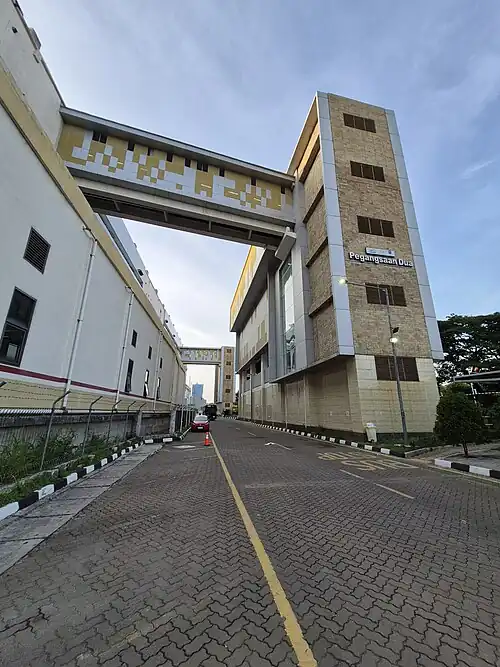 Pegangsaan Dua Station is a light rail station of the Jakarta LRT Line A. The station is located at Pegangsaan Dua, Kelapa Gading, North Jakarta. The station is in a one complex with a depot and is the largest station with a total area of 12 ha (120,000 m2).[1]