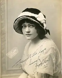 Her family migrated at the turn of the century from Ireland to Canada, soon moving to Buffalo, New York. It is unclear whether Peggy was born there or in Ireland.("I am Irish – impulse rather than reason guided me"). O'Neil attended a Loreto convent school. At the age of nine, her father Frederick died in a train wreck, her mother Mary Buckley O'Neill died three years later. Peggy came under the care of local relatives.[1] An uncle named Charlie Zimmerman, a music director, encouraged her artistic talent and took to theater choirs. He also cast as a choral singer in the play "The Sweetest Girl in Paris", the opening play for the newly rebuilt La Salle Theater in Chicago in 1910.[2][1][3]