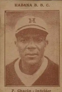 Chacón played from 1908 to 1932 with several clubs in the Cuban League, including Almendares, Azul, Club Fé, and Habana; he managed Cienfuegos to a championship in 1930. Over the course of his Cuban League career, he compiled 463 hits with a .246 batting average.[5] He won the league batting title in the 1920–21 season, hitting .344.[6]