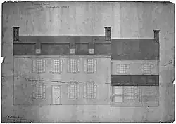 1849 elevation by George Brooke Roberts, showing the c.1690 house and 1835 addition (right).