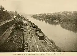 Pencoyd Iron Works, in 1914, at background left. Pencoyd Bridge is visible in the background center.