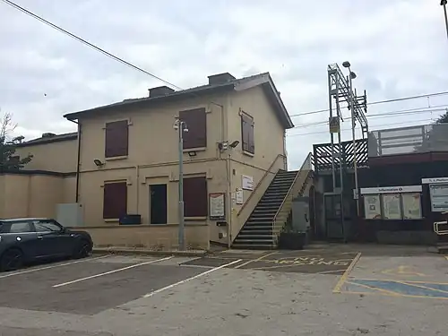 The station's two platforms used to be link by a footbridge, but this was removed sometime between 1990 and 2003,[4] replaced by an underpass immediately to the south of the station building.