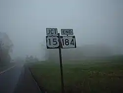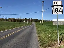 Pennsylvania Route 184 (PA 184, designated by the Pennsylvania Department of Transportation as SR 184) is an 9.68-mile-long (15.58 km) state highway located in Lycoming County in Pennsylvania. The western terminus is at PA 287 in Brookside. The eastern terminus is at Steam Mill Road, just after an interchange with Interstate 99 (I-99) in Steam Valley, a hamlet in Cogan House Township. The route was first designated as a spur from PA 84 in Brookside to US 15 via Cogan House Road. (PA 84 was renumbered to PA 287 in 1961.[2]) Construction to upgrade US 15 several miles each way from its intersection with PA 184 to interstate standards included a new interchange with PA 184.