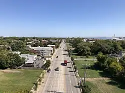 After crossing the river, the bridge passes over part of the large former Philadelphia Energy Solutions oil refinery. After descending off the bridge, the route continues as four-lane divided Penrose Avenue near some businesses. PA 291 has a junction with 26th Street, which heads north to provide access to westbound I-76 (Schuylkill Expressway) and from eastbound I-76, and an entrance road that heads south to The Navy Yard, a mixed-use development that is located at the former Philadelphia Naval Shipyard. Past this intersection, the road passes under a CSAO railroad spur and CSX's Harrisburg Subdivision railroad line before intersecting Pattison Avenue, which heads east to the South Philadelphia Sports Complex, and becoming a five-lane road with a center left-turn lane, running past homes and businesses in South Philadelphia. PA 291 reaches its eastern terminus at a partial interchange with I-76, with access to eastbound I-76 and from westbound I-76. Past this, the road continues northeast as Moyamensing Avenue.[4][6]