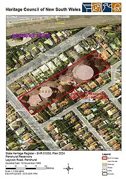 The Penshurst Reservoirs are heritage-listed reservoirs located at Laycock Road, Penshurst in the Georges River Council local government area of New South Wales, Australia. They were designed and built during 1895 by the NSW Public Works Department. The reservoirs are also known as WS87 & R88, Penshurst Elevated Steel Reservoir No 2 and Penshurst Elevated Concrete Reservoir No 3. The property is owned by Sydney Water, an agency of the Government of New South Wales. The site was added to the New South Wales State Heritage Register on 18 November 1999.[1]