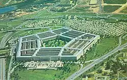 A 1950s postcard of The Pentagon with a still undeveloped Pentagon City in the top right