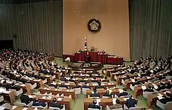 The Chinese President Jiang Zemin delivered a speech at the South Korean National Assembly in 1995