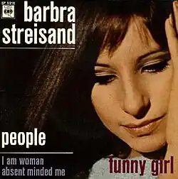 "People" is a song composed by Jule Styne with lyrics by Bob Merrill for the 1964 Broadway musical Funny Girl starring Barbra Streisand, who introduced the song. The song was released as a single in 1964 with "I Am Woman", a solo version of "You Are Woman, I Am Man", also from Funny Girl.