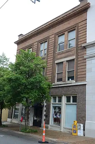 The Peoples Building & Loan Building is a historic commercial building at 213-217 West 2nd Street in Little Rock, Arkansas. It is a small three story masonry structure, its exterior finished in brick, limestone, and terra cotta. Upper floor windows are set in vertically oriented groupings with surrounding bands of checkered brickwork, and with horizontally banded lines of brick between them and at the corners. The ground floor retail window bays are divided by Ionic pilasters. Built in 1903, the building represents an unusually early precursor to the Prairie School of design.[2]
