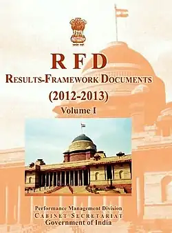 A Results-Framework Document (RFD) is a PMES tool, documenting a record of understanding between a Minister representing the people's mandate, and the Secretary of a department responsible for implementing this mandate.[11][12][13] In its fifth round of implementation, i.e. 2013, the division has made public five compendiums having RFDs of different Departments/Ministries