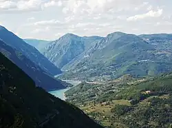 Lake Perućac (Serbian: Језеро Перућац, romanizedJezero Perućac) is an artificial lake on the Drina River, on the border between Bosnia and Herzegovina and Serbia. It was created in 1966 and occupies a natural bend of the river, which encircles the Tara mountain, between towns of Višegrad in Bosnia and Bajina Bašta in Serbia.