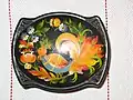Petrykivka painting (or simply "Petrykivka"; Ukrainian: Петриківський розпис) is a traditional Ukrainian decorative painting style, originating from the rural settlement of Petrykivka in Dnipropetrovsk Oblast of Ukraine, where it was traditionally used to decorate house walls and everyday household items. The earliest known examples of this style date from the 18th century, but it continues to thrive and develop as a modern art form.
