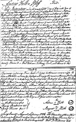 In 1784, Peter Pfaff Sr. bought land west of Muddy Creek. A post office came to the community in 1888.[4]