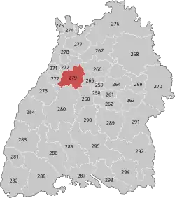 Pforzheim is an electoral constituency (German: Wahlkreis) represented in the Bundestag. It elects one member via first-past-the-post voting. Under the current constituency numbering system, it is designated as constituency 279. It is located in northwestern Baden-Württemberg, comprising the city of Pforzheim and the district of Enzkreis.[1]