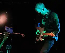 A second collaborative album Soundzero was completed in 1999, but only released in March 2008.[14] Both albums featured, amongst others, Phil Slater on trumpet and Tarlochan (Bobby) Singh on tabla. On Soundzero, Jazz singer Cleveland Watkiss, often heavily processed, made a guest appearance; whilst the album was also the first appearance of a British rhythm section, consisting of: Mark Sanders (drums); John Edwards (double bass); and Pete Lockett (percussion).[4][5]