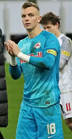 In the 2021–22 season, he became the starting goalkeeper at Salzburg ahead of Nico Mantl, in which he played in the Champions League, as his club managed to reach the round of 16.[14] He also achieved the domestic double under coach Matthias Jaissle. In the 2022–23 season, he won his second domestic league title in a row and third in total, and was voted as "Best Goalkeeper of the Season".[15]