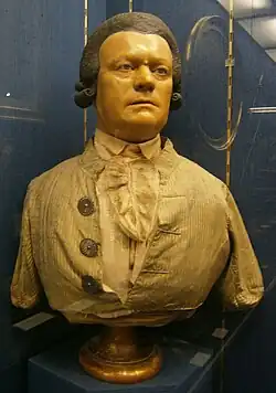In 1765, Curtius was persuaded to give up his medical career and move to Paris, where he could practice wax modelling as a fine art, starting work to set up a cabinet de cire (wax exhibition).[1] In that year he made a waxwork of Jeanne Bécu, who would later become Marie Jean du Barry, Louis XV's mistress. A cast of that mould is his oldest work currently on display. His home in Paris was visited by many of the talented men of the day.