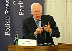 Philippe M.P.J. Maystadt (14 March 1948 – 7 December 2017) was a Belgian politician who served as Minister for Economic Affairs, Minister of Finance, and Deputy Prime Minister. He was President of the European Investment Bank (EIB) from 2000 to 2011.[1]