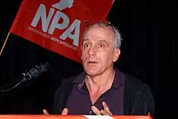 In June 2011, he was chosen by the New Anticapitalist Party as its candidate for the 2012 presidential election. Media noted that he was virtually unknown to the public, as well as that he might find it difficult to succeed previous candidate Olivier Besancenot, a well recognised figure popular beyond the party itself. He would, in addition, have to contend with divisions within the party over whether to engage more with the Left Front, with an aim to unify the political forces on the left of the centre-left Socialist Party.[7][8]