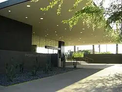 The museum opened on November 18, 1959, and was officially dedicated on November 21, 1959. Two years later, the board announced plans for an expansion, and in 1965 the museum was enlarged from 25,000 square feet (2,300 m2) to 72,000 square feet (6,700 m2). Additional expansions, led by design architects Tod Williams Billie Tsien Architects of New York, occurred in 1996 and 2006.[6] The museum more than doubled its size with new exhibition galleries, a 300-seat public theater, a research library, studio classroom facilities, the PhxArtKids Gallery, and a café. Most recently, in 2006, the museum saw the opening of the Ellen and Howard C. Katz Wing for Modern Art, the Heather and Michael Greenbaum Museum Lobby, an expanded museum store and the 40,000-square-foot (3,700 m2) Bennett and Jacquie Dorrance Sculpture Garden. A new entrance from the north parking includes a cantilevered canopy, creating a large outdoor pavilion area.[7] The museum's growth has been funded, in part, by successful City of Phoenix Bond Elections and a voter-approved bond.[8]