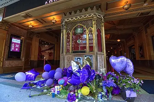 A makeshift memorial for Prince at the Fox Theatre in Atlanta, April 24. The theater was the site of Prince's last performance before his death on April 21.