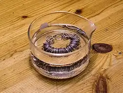 Hard soldered silver rings placed in diluted sulfuric acid...