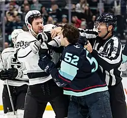 Dubois fighting Tye Kartye of the Seattle Kraken in December 2023.