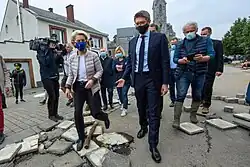 Dermagne was born on 30 December 1980 in Namur.[1] He is the eldest son of Madeleine Barnich and Jean-Marie Dermagne, who served as a lawyer at the Dinant bar from Rochefort.[5] In 2003 he obtained a law degree from the Catholic University of Louvain, and soon afterward started becoming politically active.[6] He was parliamentary attache to the Walloon Parliament.[7] In 2006 taking a seat as a provincial councillor for Namur and a municipal councillor for Rochefort.[8] In 2009 he joined Eliane Tillieux's cabinet as political secretary, before in 2012 becoming the first alderman of Rochefort.[8] Returning to Namur in 2014, he was elected to the Parliament of Wallonia.[9] In January 2017 he become Minister of Local Authorities in Wallonia, succeeding Paul Furlan temporarily as Furlan resigned following an affair.[10] He stopped being minister 6 months later, returning to the post of alderman of Rochefort and leader of the PS group in parliament.[10]