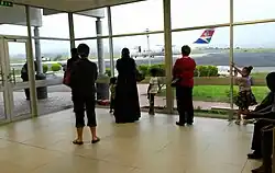 View of an Airlink aircraft from the arrivals area