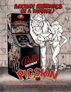 Pigskin 621 A.D. is an arcade game released in 1990 by Midway Manufacturing under the "Bally Midway" label.[1] One player can battle the computer, or two players can battle head-to-head. Two teams compete to score as many touchdowns as possible in the tradition of American football, but actual play is more similar to rugby football.