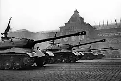 The first production tank to feature a conventional pike nose was the Soviet IS-3, which entered service in 1945 at the very end of WWII.[2] The Soviet pike nose concept initially started with a revamped version of the IS-2 heavy tank from late 1944, known as the IS-2U, which eventually evolved into the IS-3.[2] The IS-3 was arguably the most heavily protected tank of its time and came to popularize the concept of the pike nose to the rest of the world. The Soviets used the pike nose on several tank projects, such as the IS-7 and IS-8 heavy tank projects, the latter entering service as the T-10, but also on other armour , such as the Object 268 heavy assault gun.