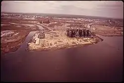 Rutgers University ecology scientists have documented the bizarre transformations to Piles Creek marine species caused by contamination and toxicity.[3][4] The creek was extended as part of wetlands mitigation project for the expansion of the New Jersey Turnpike.[5] GAF Materials Corporation was once located along the creek.[6][7] Public Service Enterprise Group (PSE&G) opened a solar farm on a brownfield site along the shore of the creek in 2014.[8][9]
