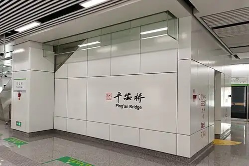 Ping'an Bridge (Chinese: 平安桥) is a metro station of Line 4 of the Hangzhou Metro in China. It is located in Gongshu District of Hangzhou.[1] The station was opened on 21 February 2022.[2] It will be a transfer station of Line 4 and Line 15.