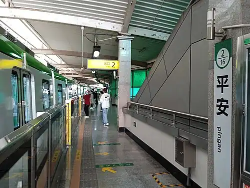 Ping'an is a station on Line 2 of Chongqing Rail Transit in Chongqing Municipality, China.[1][2] It is located in Dadukou District. It opened in 2006.