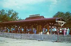 Weiss bought a 19th-century steam locomotive in Pennsylvania and two paddle-wheel boats built in Miami, Florida for the park as well as refurbished antique fire engines and a Wells Fargo stagecoach. Gandy dancers laid almost a half-mile of narrow gauge railroad track for a train to carry visitors around the park. Weiss also dredged a lake and a canal for the paddleboats to ferry visitors from the parking lot into the park. In addition, Weiss surrounded the town at the center of the park with an Indian village, a gold mining area, and a petting zoo with pony rides.[1]