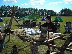 Pioneering is the art of using ropes and wooden spars joined by lashings and knots to create a structure. Pioneering can be used for constructing small items such as camp gadgets up to larger structures such as bridges and towers. These may be recreational, decorative, or functional.[1][2]