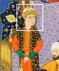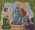 2. ^ Depictions of each king are miniatures from the 16th-century illustrated manuscript, the Shahnameh of Shah Tahmasp, except that of Fereydun, which is from the Tarjumah-i Shâhnâmah, an early 17th-century Ottoman manuscript, and those of Zav and Garshasp, which are from the 14th-century Ilkhanate manuscript known as the Great Mongol Shahnameh.