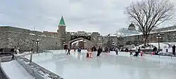 Part of the square is transformed into a skating rink during winter months, and to its west is the sculpture "The Muses" by Alfred Laliberté, donated by the Government of Quebec for the 375th anniversary of the city in 1983.[2]