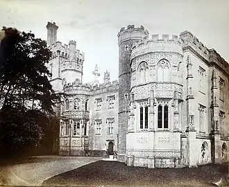 In 1779 it again came into the possession of two sisters who were not direct descendants of the family After the death in 1808 of William Esco Treffry, it was inherited together with the family estates by his nephew Joseph Thomas Austen, a bachelor, who lived there with his mother. He changed his name by deed poll to Joseph Treffry in 1836. The house at this time was in a state of disrepair. Starting in 1813, he undertook much rebuilding and renovation, the work continuing for about thirty years. In 1820 he rebuilt the high tower that Elizabeth Treffry had defended so staunchly. He tried to incorporate as much as possible of the Tudor structure into his new building. The house was inherited by the Rev Edward Treffry in the nineteenth century. He is said to have been preaching a sermon when a wrecked vessel was reported. Being keen to share in the spoils, he told his congregation to remain seated while he made his way to the porch. Then saying "Right, now we can all start fair", he joined his congregation in sprinting to the shore.[4]