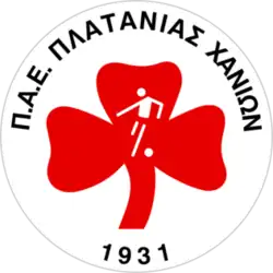 Platanias Football Club (Greek: Π.Α.Ε. Πλατανιάς Χανίων) is a Greek professional football club based in Platanias, Chania, Greece. The club hosted its home games at the Maleme ground and at the Perivolia Municipal Stadium (during the Super League period). Platanias was the first, and to this day only club to have represented Chania in the Super League, playing for six seasons between 2012 and 2018. Their colors are red and white.