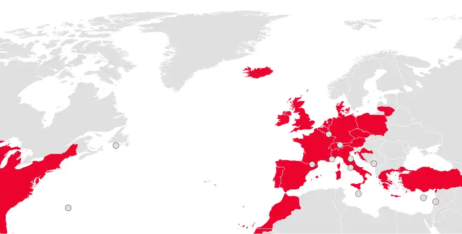In August 2021, Play applied to the United States Department of Transportation for the operation of flights between Keflavík and the U.S. east coast starting in the summer of 2022.[18] Its application was subsequently approved and the airline on 16 December 2021 announced its first services to the U.S. with flights to Baltimore and Boston, launching in April and May 2022 respectively.[19][20] In January 2023, Play announced it would launch its first destination in Canada, with flights between Keflavík and John C. Munro Hamilton International Airport in Ontario, launching in June 2023.[21]