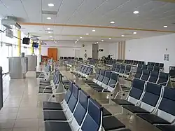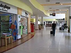 The passenger terminal, covering an area of 4,700 square metres (51,000 sq ft), houses both arrival and departure facilities for domestic and international flights. The terminal can handle 470 passengers per hour and offers typical services found at a regional airport, including check-in counters for domestic and international flights, car rental services (Alamo, Budget, Sixt, and Thrifty), taxi stands, and a departure concourse with four gates providing direct access to the apron, enabling passengers to board their planes by walking to the aircraft.
