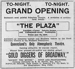 Advertisement for the grand opening of the Paddington Plaza Theatre, 28 August 1930
