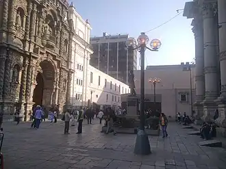 Located in front of the Basilica de la Merced, the square was the scene of two important political moments in the republican history of Peru. In 1821, it was the location of one of José de San Martín's proclamations of the independence of Peru. Previously, he had done it in the city of Huaura and in the Plaza Mayor.[1]
