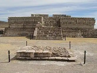 The complex was built over a large rectangular platform oriented east–west, measuring approximately 132 by 89 meters (433 by 292 ft) over which several structures were built, three main structures are aligned east – west.[1]